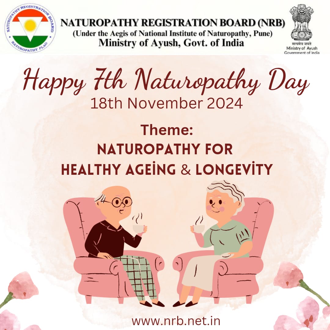 The 7 Naturopathy Day, which is being celebrated across the country on November 18th, with the theme *Healthy ageing and longevity According to the World Health Organization, healthy aging is "the process of developing and maintaining the functional ability that enables well-being in older age. The healthiest seniors take measures to maintain various aspects of their health as they age. Healthy ageing is about retaining the ability to do the things that make you happy and fulfilled as you get older. Staying physically and mentally well can slow the impacts of ageing: it can also delay your need for aged care services. You may experience some health and mobility challenges as you age. Aging is the time-related deterioration of the physiological functions necessary for survival and reproduction. The phenotypic (individual observable traits) changes of senescence (the process of growing old) are not to be confused with diseases of senescence, such as cancer and heart disease which may affect individuals. Aging well or successful aging has been defined as "the ability to maintain low risk of disease-related disability, high mental and physical function, and active engagement with life", The life expectancy of the Early Bronze Age (5000 years ago) and its contemporaries is around 35-40 years. People died at a very young age. Infant and child mortality was very high. The limited food resources and infectious diseases were also factors, too." Assured food, good dwelling, improved sanitation, gainful employment, etc are some of the key points in increasing life expectancy. People are living, now, well in to their 60's. There are countries where the life expectancy is beyond 70 and 80. There are some exceptional countries where they live beyond 100 years. However, the quality of life matters along with the added number of years. Lot of evidence is generated to establish the fact that the best way to boost the chance of living a long and active life is to follow the advice you likely heard from your parents: eat well, exercise regularly, get plenty of sleep, and stay away from bad habits. The physiological burden of toxic stress load on the system can adversely affect the aging process and lifespan. Chronic stress can lead to heart problems, for example, that put people at risk for early mortality. Nature Cure way of life, which lays emphasis on individual's efforts and active engagement with fiull awareness makes healthy ageing more meaningful and fulfilling. On Nov. 18, 1945, Mahatma Gandhi founded the All-India Nature Cure Foundation Trust with Nature Cure Clinic and Sanatorium (current National Institute of Naturopathy), Pune as its nucleus. The object of making this trust has been specified as "spreading the knowledge of the science of nature cure in all its aspects'. For 90days, from Aug 2 1st to Nov 18th 1945, Gandhi ji along with Sardar Vallabhbhai Patel took a course of Nature cure treatment as in-patients under the supervision of Dr Dinshah K Mehta. Gandhiji's health improved and gained 6 lbs in weight. Then, he confidently remarked: "I shall now live for 120 years'' With this message we, as naturopathy enthusiasts, should spread this knowledge for the benefit of humanity, and to promote healthy ageing and longevity. As we observe Naturopathy Day, let us commit to spread awareness about healthy aging and longevity. By integrating the wisdom of nature cure with contemporary health practices, we can empower individuals to lead fulfilling ives, well into their later years. The journey towards healthy aging is a shared responsibility that involves not only personal choices but also societal support systems that nurture and respect the elderly. Together, we can create a future where aging is synonymous with vitality and purpose, Naturally Yours Prof. (Dr) K. Satya Lakshmi