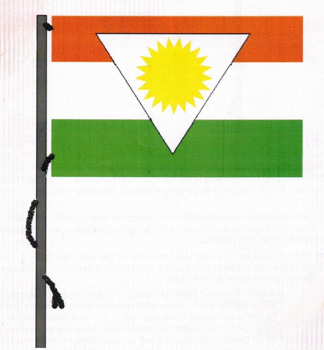 Early in 1940's, A Flag of The Life Natural was in existence and was published by 'The Nature Cure Publishing House, Trichy' edited by Acharya K. Lakshman Sharma in their journal, 'The Life Natüral Vol. 5 No. 3 in August 1945. It was accepted by the then Naturopaths as a representation of their commitment to Nature Cure. The following is the excerpt from the journal "This flag which has been adopted as the symbol of our allegiance to the law of The Life Natural is interpreted as is explained below. The "Tri-colour" has came to be recognised as the a symbol of their aspirations by all the freedom loving people of India; and therefore we Nature-Curists as fighters for liberty, in its fullest sense, have adopted it as the symbol of our aspirations. Nature-Cure has been defined as "the practical realisation of the truth that there is Divine Power behind all the workings of Life, in health and disease," and this is exemplified by the symbol in the centre-an inverted triangle with a sun in the middle. The central symbol has got another special significance also. The two upper corners of the inverted triangle represent Life and Mind and the lower corner represents the body. Since Life and Mind form the basis for the body, the body is represented as being suspended as it were from Life and Mind. The central sun represents the Spirit or the Atman which pervades the whole of creation. This Spirit not only pervades the whole of creation but also specially resides in the centre of the Trinity, Body, Life and Mind.