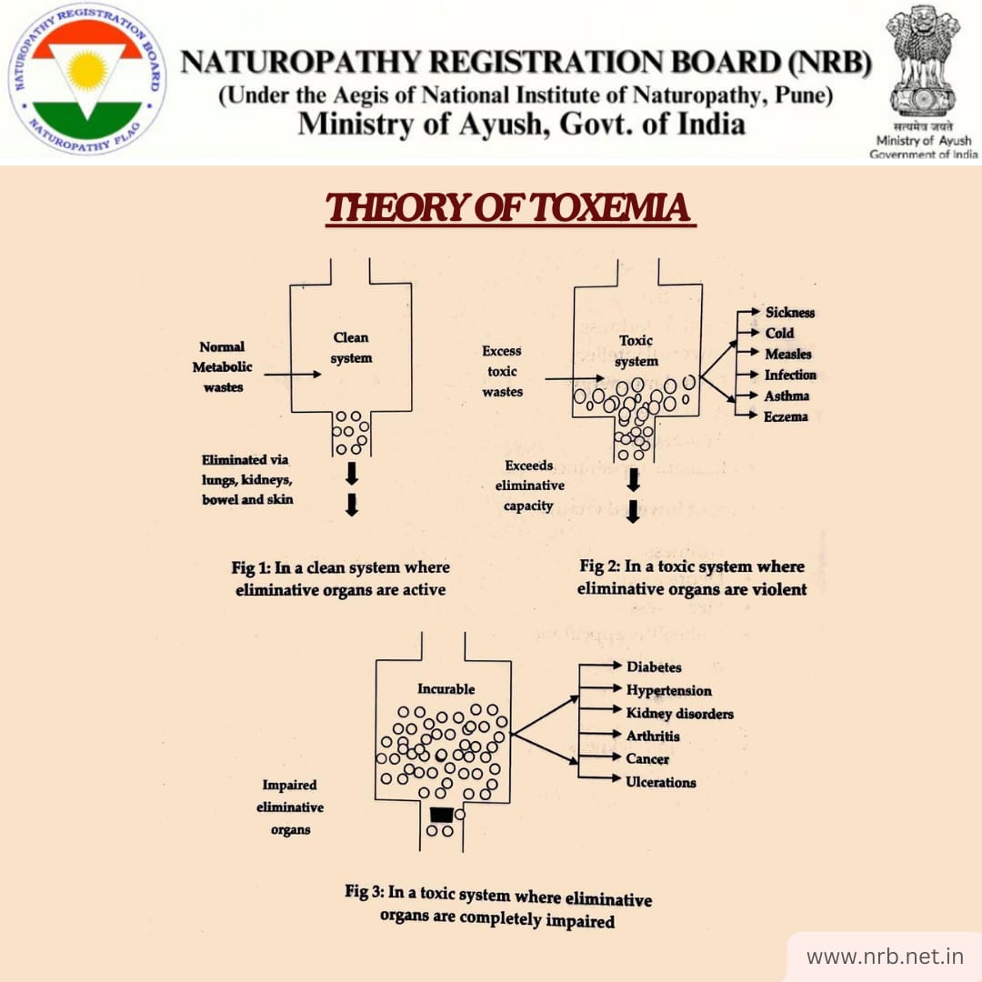 In the tissue-building process of metabolism, cell building is called anabolism and cell destruction is known as catabolism. Both the processes occur simultaneously in the living organism. The broken down tissue along with tissue exudates are taken out of the system through lymphatic drainage. When nerve energy is normal, it is eliminated as soon as it is produced. When nerve energy is low due to any reason such as physical exertion mental excitement or bad habits, the body becomes enervated. In an enervated body, elimination is poor, causing retention of toxin in the blood which leads to toxemia. JH Tilden says 'This accumulation of toxin when once established will continue until nerve energy is restored by removing the causes. So-called disease is nature's effort at eliminating the toxin from the blood. All so-called diseases are crises of Toxemia. Elimination of the waste-products of tissue-building is just as necessary as the building-up process. These two important functions depend on each other. And as both depend on the proper amount of nerve-energy to do their work well, people should know to use nerve-energy prudently. This idea laid foundation to the concept of vital economy. How to live frugally is the benchmark of Naturopathic preventive and promotive' care. Food is a stimulant. Overeating is over-stimulating. Add to this excess one or two other stimulants such as excess tea, coffee, use of tobacco, alcohol, overwork and worry, and so on will amount to draining of nerve-energy. Elimination falls far short of requirements; consequently toxin accumulates in the blood. This adds pronounced auto-toxin stimulation to that coming from over-stimulating habits, and completes a vicious circle. This complex stands for a disease-producing toxemia, which will be permanent except as a way of toxic crises known as acute elimination/diseases'. Any treatment that obstructs this effort of elimination leads to hoarding of toxins and thereby chronic afflictions in future.